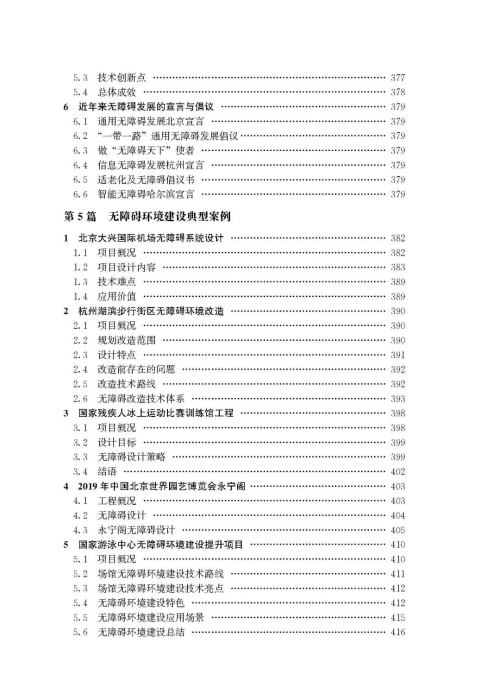 教材基于住房和城乡建设部、中国残联相关部门联合开展的无障碍环境建设的典型案例征集工作,选取了部分有参考价值的案例,对无障碍设计和建设的应用场景加以深入介绍和分析。