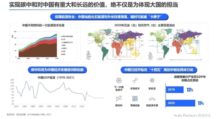在《碳中和与中国经济增长逻辑》一文中,刘俏认为,“碳中和”将促使中国在很多的底层技术上进行研发投入,从而为中国未来的经济发展提供持续动能。与“再工业化”(产业的数字化转型)、“新基建”(再工业化所需的基础设施)、“更彻底的改革开放”等其他选项相比,刘俏等学者认为,碳中和“是新发展阶段推动全要素生产率提升的最大动能”,能带来更大的“经济社会系统性的深刻变革”。