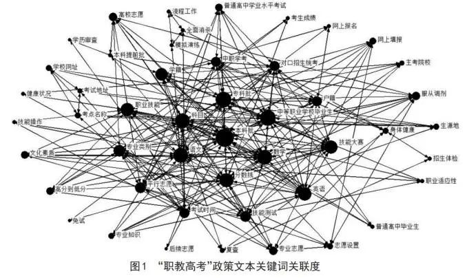 根据表1中关键词所占的比重,“本科批”所处的“录取批次”所占比重仅为8.96%,表明在七省政策文本中,“本科批”虽然词频不高,但是与次重点网络节点位置的关键词均有非常强的相关关系,可见“本科批”为“职教高考”政策的连通点。