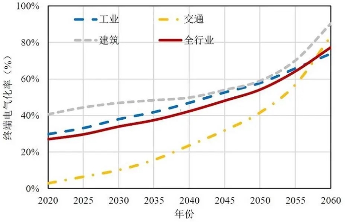 图6 全国及分部门终端电气化率