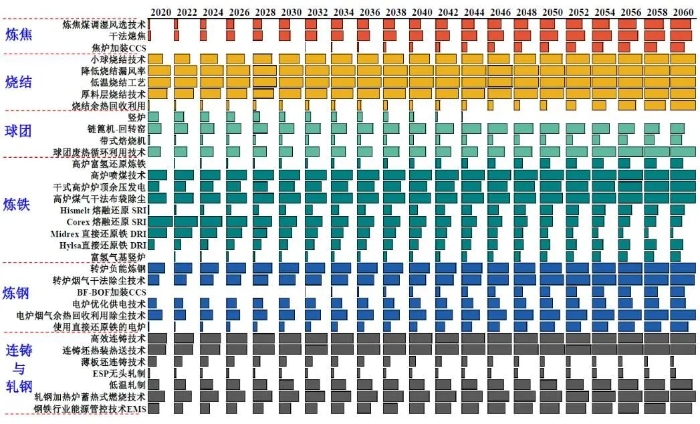 图8 钢铁行业低碳技术市场占有率(2020—2060年)