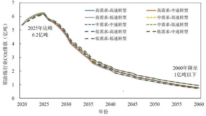 图9 原铝行业未来CO2排放路径(2020—2060年)