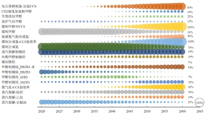 图13 关键化工产品低碳技术发展路径 (2020—2060年)