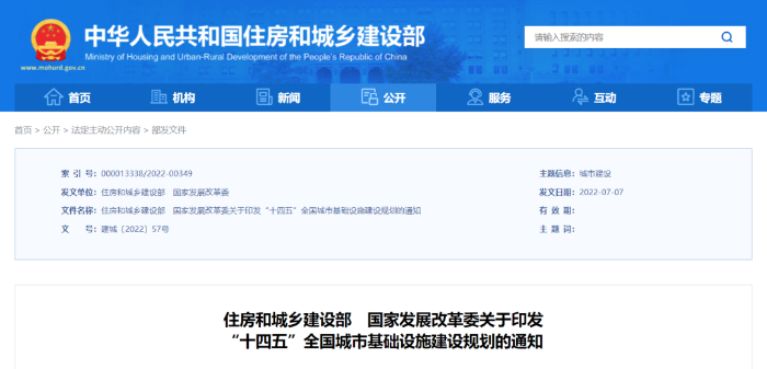 近日,经国务院同意,住房和城乡建设部、国家发展改革委印发实施《“十四五”全国城市基础设施建设规划》(以下简称《规划》)。《规划》提出“十四五”时期城市基础设施建设的主要目标、重点任务、重大行动和保障措施,对“十四五”期间统筹推进城市基础建设作出全面系统安排。