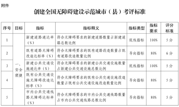 附件:创建全国无障碍建设示范城市(县)考评标准