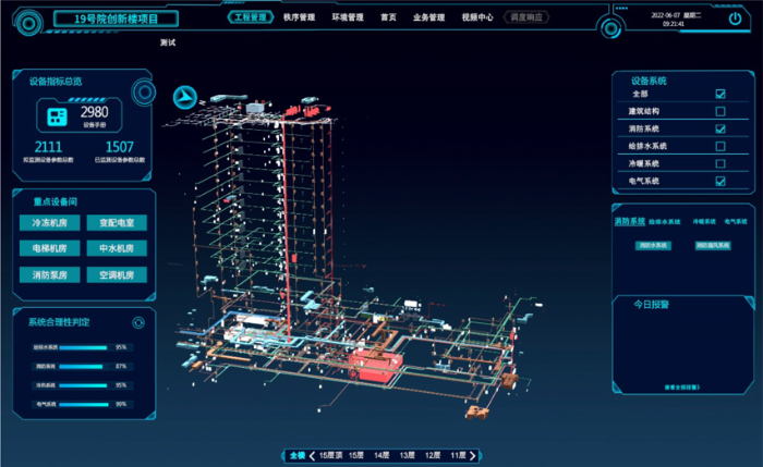 中国建科所属建科公共设施运营管理有限公司自主研发的“智慧运营管理平台”对公共设施智能化系统进行建设和集成,形成集约高效的“单体自主运维管理和总部协同管控相结合”的两级联动管理模式,依托新一代信息技术,通过感知、接入、分析、监控、预警、运维服务“六位一体”,构建智慧运管平台,实现对设施设备关键运行状态的实时监控和隐患问题的及时可视化呈现,能耗的空间感知和节能智慧分析,品质、风险的可视化、统一化管控,探寻品质、绿色、节能、智慧运营模式。