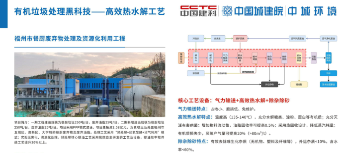 作为国资委“双百”改革试点单位,具有生态环境领域央企头部设计院基因的科技型企业,中城院(北京)环境科技有限公司聚焦“生活、工业、农业”三大领域,致力于成为全链条服务供应商。中城环境自主研发了有机垃圾处理黑科技——高效热水解工艺,将厨余垃圾在140℃的条件下“焖烧”半个小时,充分水解糖类、淀粉、蛋白等有机质,灭活有害病菌,增加物料流动性,油脂回收率可提高0.5%;热回收设计可降低蒸汽耗量;有机质损失少,厌氧产气量可提高20%。相比于传统工艺,该工艺流程简单、结构紧凑,可以做成一体化的设备,将厨余垃圾转换为工业用油和沼气,达到经济和环保共赢。