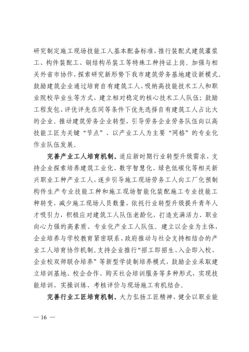 在“加强产业队伍建设,强化人力资源支撑”方面,《规划》提出,加快产业工人队伍建设,加大创新人才培养储备,加强建筑工人权益保障。