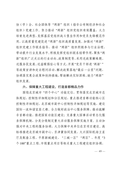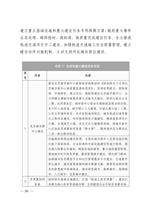 在“保障重大工程建设,打造首都精品力作”方面,《规划》提出,围绕北京城市“四个中心”功能定位,贯彻落实北京城市总体规划、控制性详细规划和分区规划,重点推进首都功能核心区控制性详细规划、北京城市副中心控制性详细规划等实施,建设国际一流和谐宜居之都。