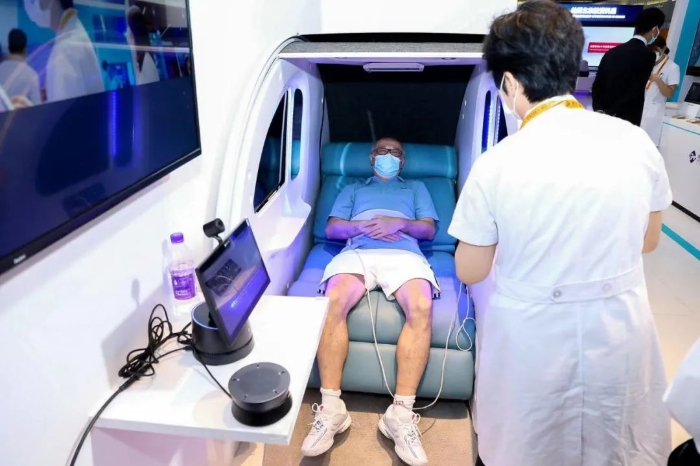 据世界卫生组织统计,我国有超过3亿人存在失眠问题。在通用技术集团展厅内,“健康心驿站”里用于改善睡眠的经络深睡眠调理舱,引来许多参观者体验打卡。借助睡眠治疗舱,用户可以对身体进行中医经络调理、助眠心理训练,结合精神压力监测、心身交互放松技术、中药外治法等,调理脏腑功能,实现身心整体平衡和睡眠障碍辅助治疗。