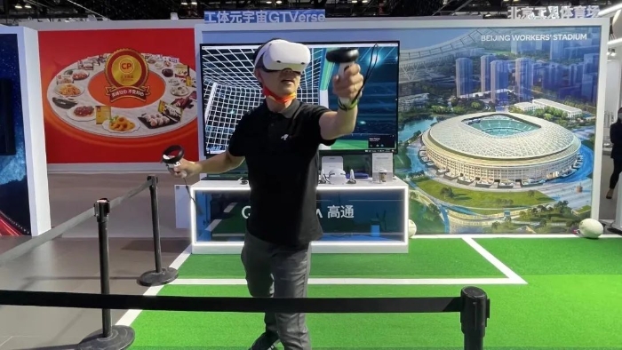除了游览元宇宙紫禁城景点,观众还可以戴上VR眼镜线上走进中国电信博物馆,通过5G+AR、VR等技术,获得丰富的电信文物、图文史料、趣味通信科普和多媒体互动体验,也可以在“智慧馆长”的陪伴下,享受到720度全景视角和一对一讲解服务;借助“5G+AI”科技,工体也被搬进首钢园,戴上(虚拟现实)头显设备,观众就能成为足球守门员,与元宇宙世界里的足球前锋进行点球较量,中国移动携手高通、中赫集团,打造了双目4K分辨率级的画质传输、延时降至20毫秒的极致体验。