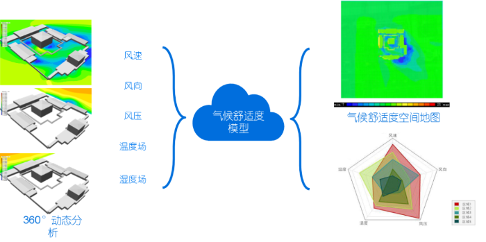 通过水体、土壤、空气、气象、声音等六个方面环境生态指标的动态收集沉淀,形成对整体环境的评价和感知。数据可通过大屏幕或APP等形式为社区游客与居民提供生态品质情况的视觉展示与分析查询;公园管理可联动开展智能浇灌作业、重点动植物病虫害自动预警;研判部门可使用基础数据模拟分析风环境、热环境对于居民游客体感的影响,服务景观及基建优化。