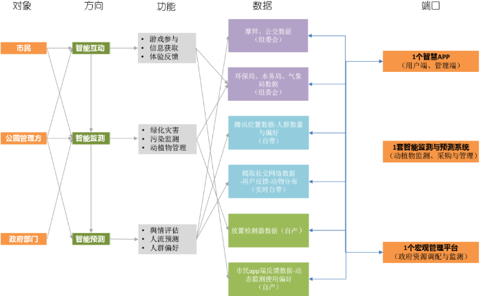 面向政府决策研判需求,通过客流、生物、环境、设施、管理等多源数据融合,开展分析评估预测,服务多元管理和服务目标。