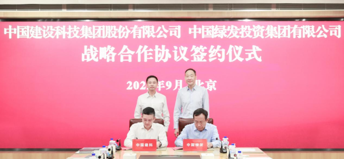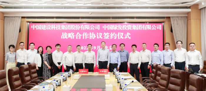 9月21日,中国建设科技集团股份有限公司(简称中国建科)与中国绿发投资集团有限公司(简称中国绿发)在京签署战略合作框架协议。中国建科党委书记、董事长文兵与中国绿发党委书记、董事长刘宇出席仪式并座谈交流。中国绿发党委委员、副总经理刘军,董事会秘书兼办公室主任来维涛,总经理助理兼幸福产业分公司党委书记、负责人李景海,副总工程师兼低碳城市开发管理部总经理郭广森,副总经济师兼规划发展部总经理蔡红君,科技创新部总经理刘琨,生态与安质部总经理孙留存,低碳城市开发部副总经理兼设计管理中心主任庞峰,中国建科党委委员、副总裁樊金龙,集团所属中城规划总经理杨一帆,建科运营党支部书记、董事长、总经理苗云波,中设数字董事、总经理于洁,中国院副总经理韩高峰,标准院副总经理李兵,集团科技质量部主任孙金颖,集团企业发展部主任、CPG集团首席发展官金晓帆等共同出席签约座谈会。