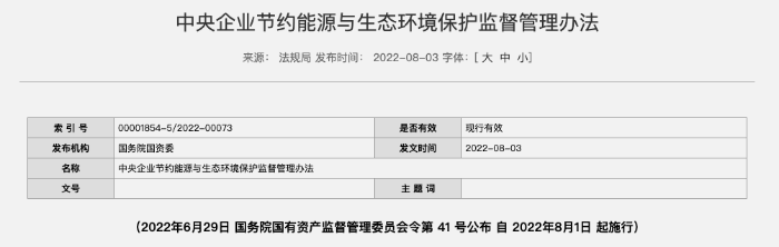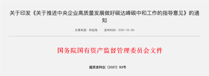 会议要求,各中央企业要深刻认识做好碳达峰碳中和工作的重大意义,完整准确全面贯彻新发展理念,有力有序推进碳达峰碳中和重点工作。会议强调,各中央企业要按照国资委要求,科学合理、“一企一策”制定碳达峰行动方案,着力推进产业结构转型升级,调整优化能源结构,强化绿色低碳科技创新和推广应用,推进减污降碳协同增效;要加强组织领导,压实工作责任,抓好组织实施,确保取得成效,发挥好中央企业引领作用。会议对《中央企业节约能源与生态环境保护监督管理办法》《中央企业碳达峰行动方案编制指南》进行了解读。国资委有关厅局负责同志在主会场、各中央企业有关负责同志在分会场参会。此前据中国环境报道,国资委社会责任局曾向各家中央企业征求《中央企业碳达峰行动方案编制指南(征求意见稿)》(以下简称《指南》)意见。国资委将结合征求意见情况,进一步修改完善《指南》,按程序印发实施,组织各中央企业于2022年底前完成自身碳达峰行动方案编制。据统计,目前已有近20家中央企业正式发布了碳达峰行动方案或工作计划,其他企业也在抓紧推进方案编制工作。国资委社会责任局指出近20家央企已发布碳达峰行动方案或工作计划,但仍存在一些问题。总体上看,中央企业编制碳达峰行动方案还存在一些问题:1、有的企业没有全面梳理核算自身碳排放情况,编制碳达峰方案缺乏数据基础;2、有的企业没有充分考虑自身产业布局、发展阶段,设定的碳达峰目标缺乏科学依据;3、有的企业推动产业转型力度不大,提出的碳排放峰值较当前水平大幅增长;4、有的企业没有深入研究碳减排路径,方案中没有提出切实可行的工作举措。2021年11月,国资委印发《关于推进中央企业高质量发展做好碳达峰碳中和的指导意见》,对中央企业制定实施碳达峰行动方案作出部署《指南》主要内容根据《指南》,主要内容由七个部分组成,共32条。第一部分为总体要求,明确《指南》适用范围,中央企业碳达峰行动方案定位、编制原则、编制范围和期限、编制主体和程序、成果要求等。第二至第六部分为方案编制具体要求。第二部分为“基础准备",要求企业在方案编制前准确核算碳排放数据,充分梳理研究重要政策,加强企业内外部形势分析,夯实方案编制基础。第三部分为“目标与战略”,重点明确企业碳达峰行动方案中通用目标、行业特性目标、战略路线设定要求。第四部分为“重点任务”,提出支撑碳达峰目标的重点工作任务,包括不限于产业结构和布局优化、能源绿色低碳转型、资源节约和高效利用、绿色低碳基础设施建设、绿色低碳循环化改造等十二项内容。第五部分为 “重大工程项目”,要求企业在方案中明确计划实施的节能减碳重大项目基本情况及预期碳减排效益。第六部分为“保障措施”,指导企业在方案中重点从统筹衔接、组织领导、资金保障监督管理、内部考核、宣传教育等方面提出要求,确保方案落实落地。第七部分为“评估和论证〞,要求企业在方案编制过程中,充分吸取各方意见建议,组织评估论证,经集团公司董事会审议通过后,正式报送国资委社会责任局。《指南》主要内容自2022年8月1日起,国务院国资委出台《中央企业节约能源与生态环境保护监督管理办法》(以下简称《办法》)正式施行。《办法》提出,中央企业节约能源与生态环境保护工作履行以下职责:建立健全中央企业节约能源与生态环境保护考核奖惩制度,实施年度及任期考核,将考核结果纳入中央企业负责人经营业绩考核体系。《办法》还要求,中央企业应根据国家节约能源与生态环境保护有关政策、企业所处行业特点和节约能源与生态环境保护水平,对照同行业国际国内先进水平,提出科学合理的任期考核指标和目标建议值。国资委将中央企业节约能源与生态环境保护考核评价结果纳入中央企业负责人经营业绩考核体系,对中央企业任期节约能源与生态环境保护考核指标和目标建议值进行审核,并在中央企业负责人任期经营考核责任书中明确。业内人士表示,央企包括碳排放在内的节约能源与生态环境保护考核指标与负责人考核挂钩,都会形成鲜明的导向,有利于促进中央企业领导干部树立正确的政绩观和发展观,更加重视生态文明建设和“双碳”战略目标实施等各项工作,为其提供更坚实的组织保障和制度保障。