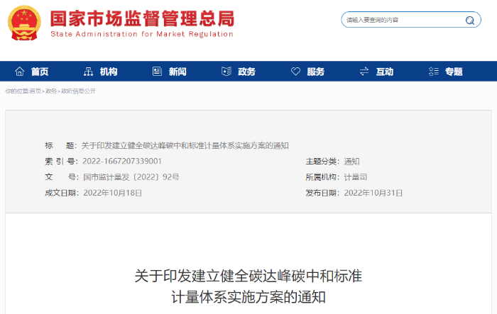 为深入贯彻落实党中央、国务院决策部署,扎实推进碳达峰碳中和标准计量体系建设,近日,市场监管总局、国家发改委、住建部等九部门联合印发《建立健全碳达峰碳中和标准计量体系实施方案》(以下简称《实施方案》),明确我国碳达峰碳中和标准计量体系工作总体部署,为相关行业、领域、地方和企业开展碳达峰碳中和标准计量体系建设工作提供指导。