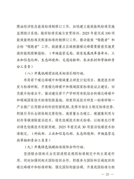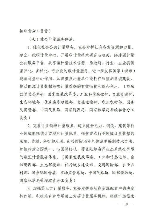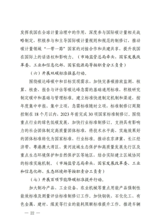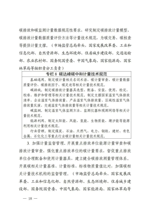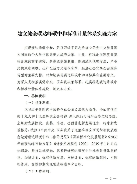 为贯彻落实《中共中央国务院关于完整准确全面贯彻新发展理念做好碳达峰碳中和工作的意见》和《2030年前碳达峰行动方案》有关部署,近日,市场监管总局、国家发展改革委、工业和信息化部、自然资源部、生态环境部、住房城乡建设部、交通运输部、中国气象局、国家林草局等九部门联合发布《建立健全碳达峰碳中和标准计量体系实施方案》(以下简称《实施方案》)。