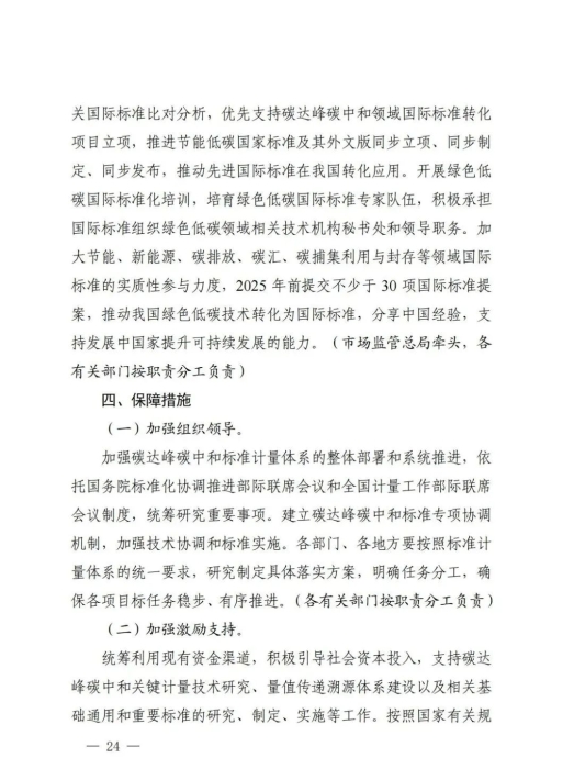 《方案》明确,统筹利用现有资金渠道,积极引导社会资本投入,支持碳达峰碳中和关键计量技术研究、量值传递溯源体系建设以及相关基础通用和重要标准的研究、制定、实施等工作。
