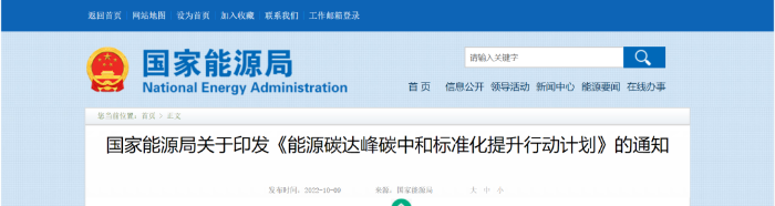 国家能源局关于印发《能源碳达峰碳中和标准化提升行动计划》的通知