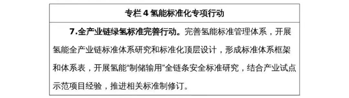 重点围绕可再生能源制氢、电氢耦合、燃料电池及系统等领域,增加标准有效供给。建立健全氢能质量、氢能检测评价等基础标准。