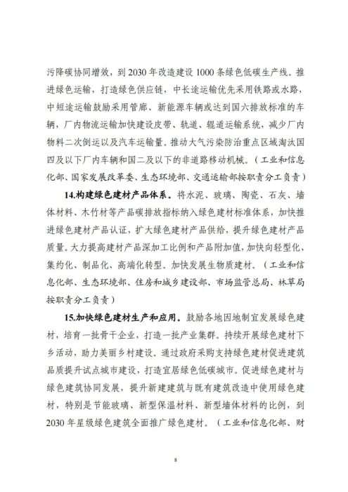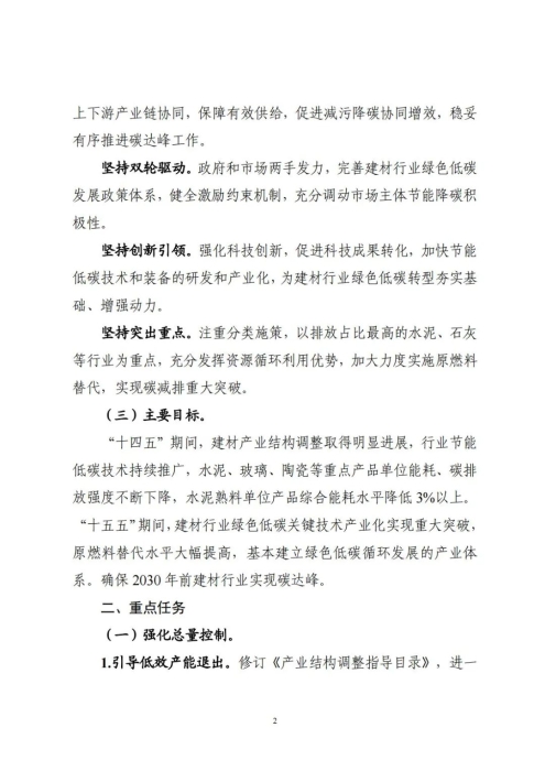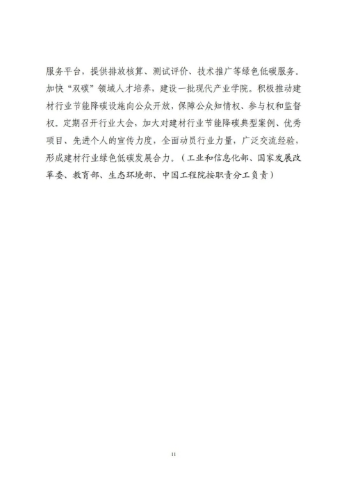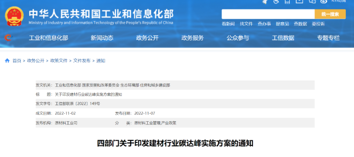 11月8日,工业和信息化部、国家发展和改革委员会、生态环境部、住房和城乡建设部联合印发《建材行业碳达峰实施方案》(以下简称《实施方案》)。