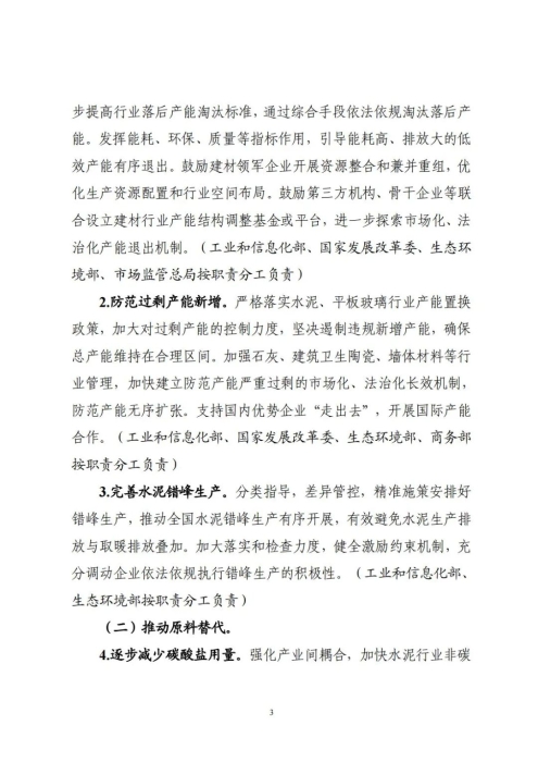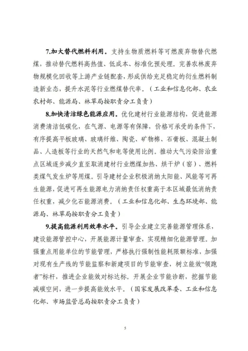 《实施方案》明确,“十四五”期间,水泥熟料单位产品综合能耗水平降低3%以上。“十五五”期间,建材行业绿色低碳关键技术产业化实现重大突破,原燃料替代水平大幅提高,基本建立绿色低碳循环发展的产业体系。确保2030年前建材行业实现碳达峰。