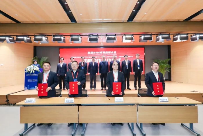 ▲平台发起单位代表签署中央企业BIM创新示范项目启动书