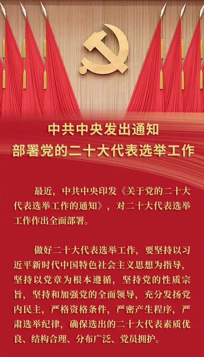 最近,中共中央印发了《关于党的二十大代表选举工作的通知》,对二十大代表选举工作作出全面部署。