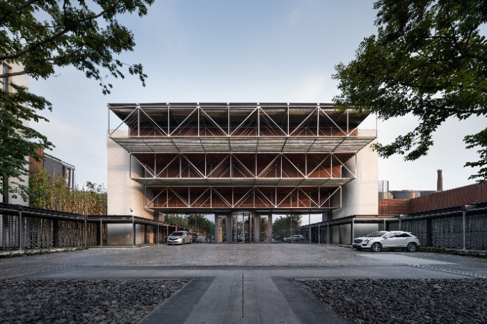 主要技术特点:建设用地为高差复杂、狭窄的山地,高密度带来建筑群体组合、剖面设计、场地组织的难度,新建建筑顺势而为、见缝插针,形成细密、有机的建筑群体和外部空间。新建建筑采用轻型格构工业风的设计策略,与工业遗产保护相结合。采用系统性策略很好地解决了既有工业建筑改造带来的空间利用、加固体系、外围护构造更新等复杂问题。采用丰富的植物,作为柔性、系统化的调和介质,与建筑结合手法使建筑绿色、可变、融于自然。