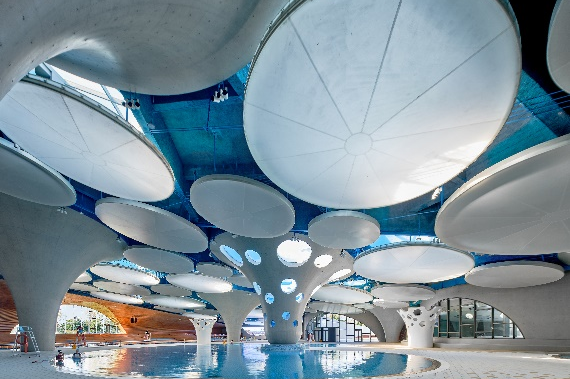 主要技术特点:清水混凝土被用作活动中心建造的主要材料,所见即是结构。空间形态符合结构的受力逻辑。数字化施工模型的建立和应用成功实现了设计与施工的无缝对接,全面控制清水混凝土工艺深化、加工和安装的整个环节,设备末端控制以模板禅缝划分为基础,精准控制末端位置。整体屋顶采用覆土屋面,结合上人的栈道体系形成屋顶的开放景观空间。