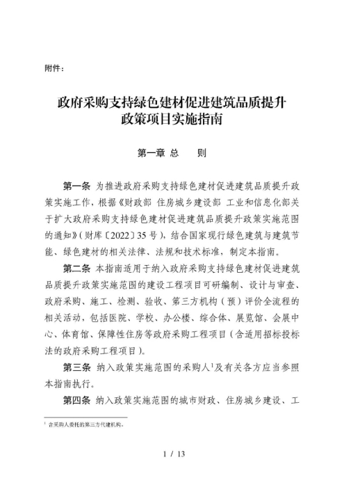 《政府采购支持绿色建材促进建筑品质提升政策项目实施指南》