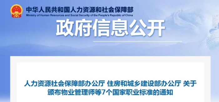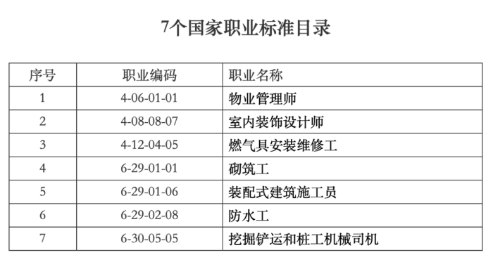 近日,人力资源和社会保障部、住房和城乡建设部根据《中华人民共和国劳动法》有关规定,共同制定并颁布了物业管理师、室内装饰设计师、砌筑工、装配式建筑施工员、防水工等7个国家职业标准。原相应国家职业(技能)标准同时废止。