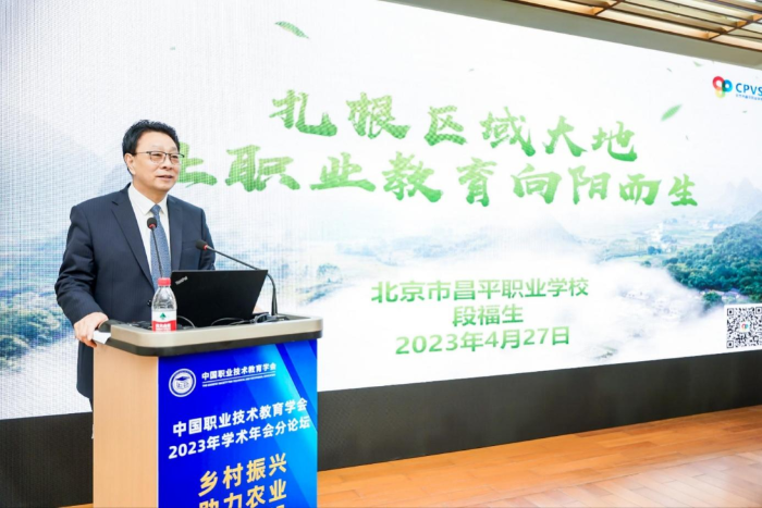段福生做题为《扎根区域大地,让职业教育向阳而生》的报告,深入分析了人才培养与区域发展效益链、资源链不协调不匹配的问题,从“扎根大地建机制,提升企业积极性”、“融入大地搭平台,增强各方资源统筹和调配”、“服务大地创模式,提升学校育人效能”等三个方面提出了破题思路,同时提出,要精准分析村域村情,对接“五大振兴”做好顶层设计,围绕“五大振兴” 目标优化人才库、打造课程库、挖掘项目库、用好专家库,扎根、融入、服务区域大地办学育人,全面助力乡村振兴。