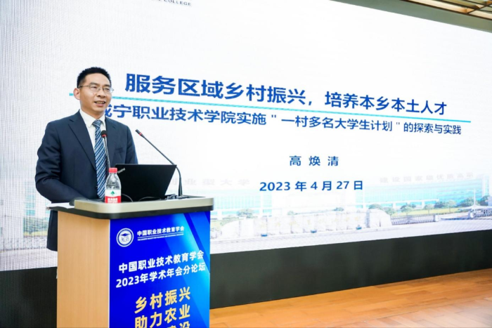 高焕清做题为《服务区域乡村振兴,培养本乡本土人才》的报告,分享了咸宁职业技术学院通过实施“一村多名大学生计划”项目有效助力乡村振兴的生动实践。报告介绍了院校统筹考虑村级组织结构、农村人才结构、产业发展趋势和涉农专业招生、就业等方面的问题,按照“村里来乡里去”的原则,科学设定培养目标,通过多元协同、共管厚植、授渔强技、跟进服务等有效措施确保“招得来”“育得好”“用得上”“扎下根”,培养了一支扎根乡村的人才队,伍促进了学校的内涵发展,为乡村振兴提供了支撑,为乡村基层治理做出了探索。