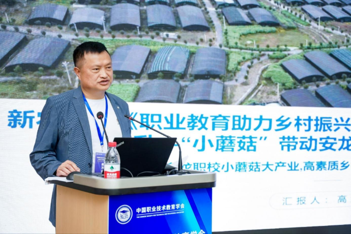 高武国做题为《职业教育助力乡村振兴重点帮扶地区人员职业技能提升——“小蘑菇”带动安龙县乡村产业发展》,分享了安龙中等职业学校紧密结合当地经济发展特点,深入推进产教融合,充分发挥校企合作优势,培养“懂农业、爱农村、爱农民”的“三农”工作队伍,依托小蘑菇发展大产业,通过高素质乡村技能人才培养助力乡村产业发展的成功经验。