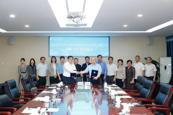 北京建院副总经理郑琪、北京联合大学副校长张恩祥分别代表双方签署战略合作框架协议。协议涵盖科研合作、教育合作、学术交流与培训合作、成果转化合作等多项内容。