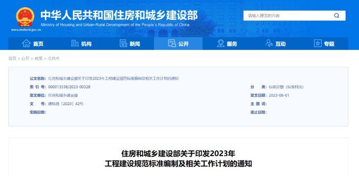 6月7日,住房和城乡建设部印发2023年工程建设规范标准编制及相关工作计划,包括6项工程建设强制性国家规范、113项工程建设标准、10项标准翻译、2项国际标准、49项专项工作。