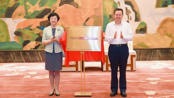 孙英和市委副书记、市长程用文共同为中国建科长江中游区域中心揭牌。