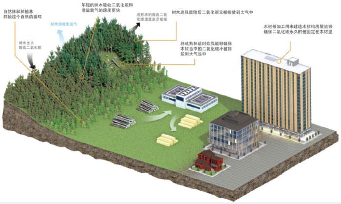 木结构建筑的全生命周期具有固碳、保温隔热性能佳、工期短和可回收利用等优点,其能耗和环境影响远优于钢结构和混凝土结构。人工改良的木材即工程木的发展及其结构应用,可适合于建造大型复杂木结构。