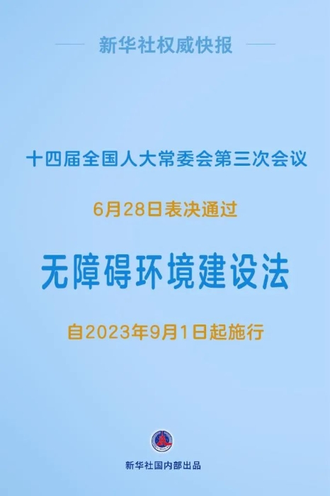 6月28日,十四届全国人大常委会第三次会议表决通过无障碍环境建设法。