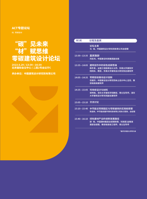 由中国建筑节能协会等主办、中国建设科技集团股份有限公司(简称中国建科)等联合主办的ACT2023(首届)国际零碳城市大会暨零碳建筑博览会(简称ACT大会)将于2023年6月28日—30日在北京国际会议中心举办。中国建科携所属中国建筑设计研究院有限公司、中国市政华北设计研究总院有限公司、中国城市建设研究院有限公司、中国建筑标准设计研究院有限公司、中国城市发展规划设计咨询有限公司和中城院(北京)环境科技股份有限公司亮相ACT大会,分享绿色、低碳、生态技术成果,展示最新技术实践。