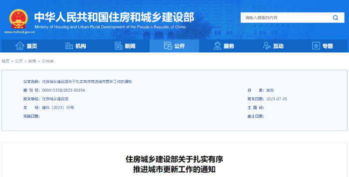 据住房和城乡建设部官网消息,为深入贯彻落实党的二十大精神,复制推广各地已形成的好经验好做法,扎实有序推进实施城市更新行动,提高城市规划、建设、治理水平,推动城市高质量发展,近日,住房和城乡建设部发布《关于扎实有序推动城市更新工作的通知》,就有关事项通知如下: