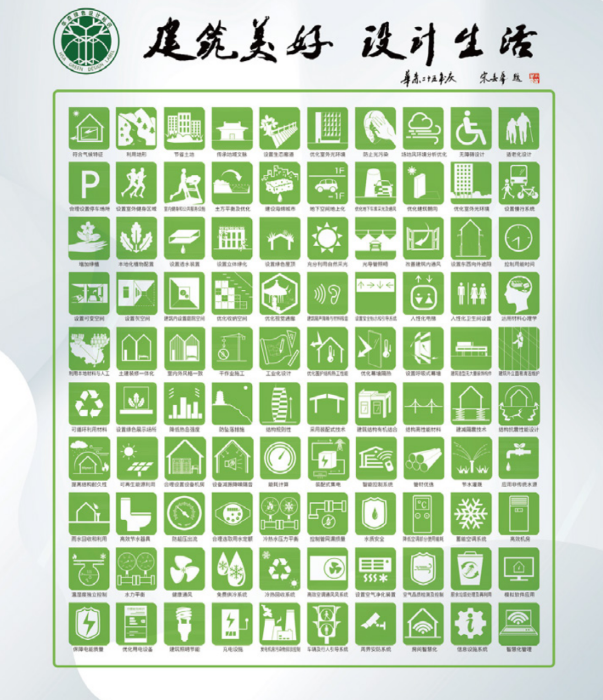 华森公司基于多年设计实践的经验总结,推出“华森100”正向设计工具,以100个标识呈现对应100个设计要点,根据项目具体情况选择适宜的绿色策略,探索“优势板块+绿色设计”产品发展体系。