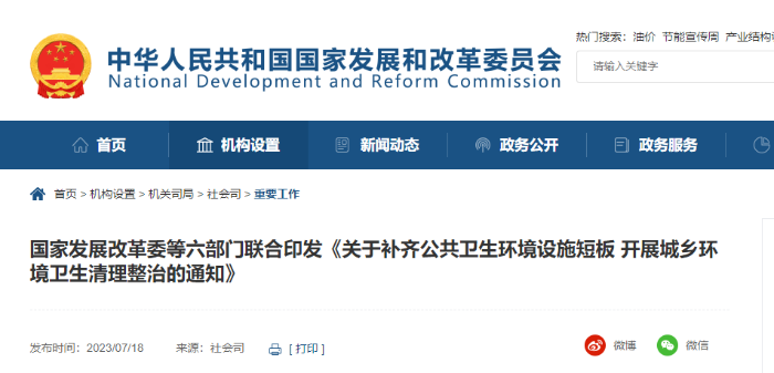 为深入贯彻落实党中央、国务院决策部署,近日,国家发展改革委等六部门联合印发《关于补齐公共卫生环境设施短板 开展城乡环境卫生清理整治的通知》(以下简称《通知》)。