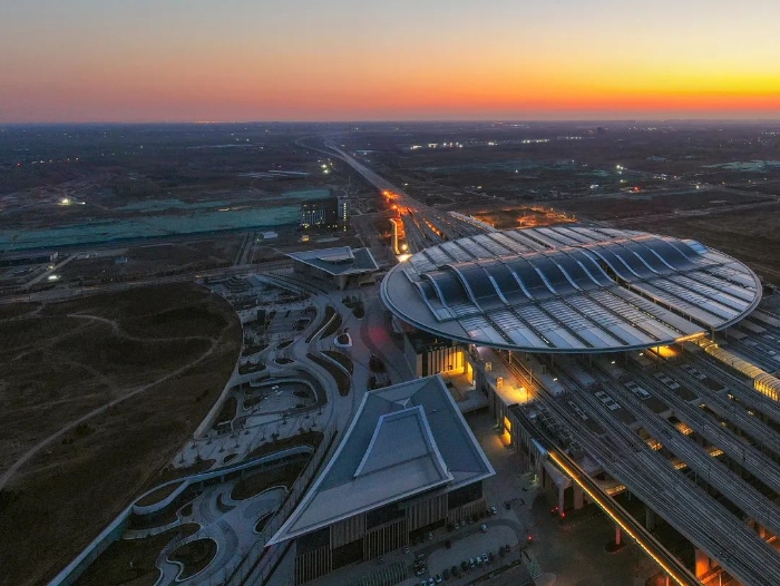 位于雄安高铁站主入口两侧,是高铁站附属多层商业建筑。作为高铁站“站城一体化”重要组成部分,其空间和功能与站体高度复合、融为一体,成为高铁站主体的延伸,与主体共同构成标志性的城市建筑形象。