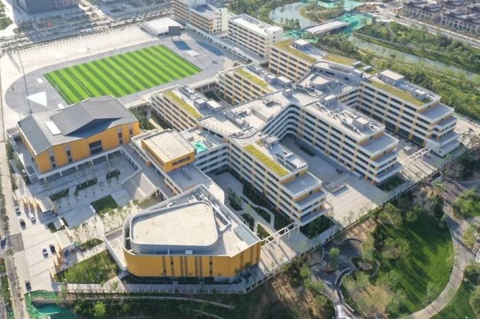 以交流共享公共空间为核心,教学、科学、艺术、体育等多中心围绕布置,构筑多中心、多层级、多位一体的教育空间,退让城市空间、开放校园功能,打造与城市有机融合、简约环保、景色宜人的共享绿色低碳校园。