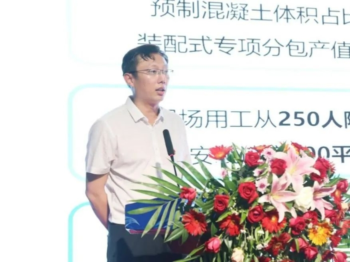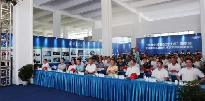 在技术交流环节,装配院副总经理、总工程师任彧,装配院党总支委员、副总经理周翔,环海集团副总经理、建灿公司党支部书记、董事长林威分别从技术的研发及应用、项目管理、部件生产安装三方面进行介绍分享。