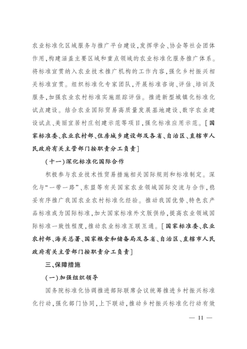 经国务院标准化协调推进部际联席会议全体会议审议通过,现将《乡村振兴标准化行动方案》印发给你们,请结合实际认真贯彻落实。