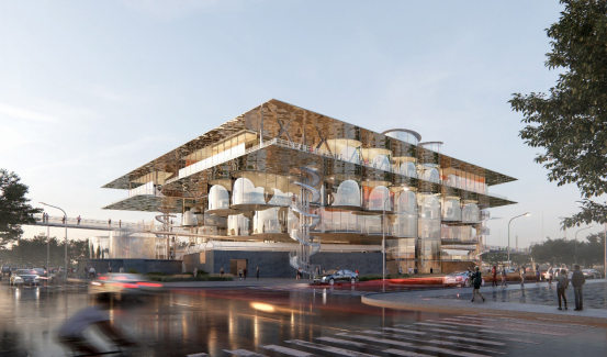 ▋中国院中标琶洲西区109地块项目。该项目将充分考虑地块内遗留建/构筑物的活化利用,在原建筑之上的新建筑采用“悬浮”设计手法,层层出挑,形成丰富立体空间形态;设计竖向交通核及多层开放平台,使建筑更好地融入城市生活;采用连续大跨度钢构,以相似的形态、差异性的材料与构造,回溯现代建筑与传统遗产的对话。