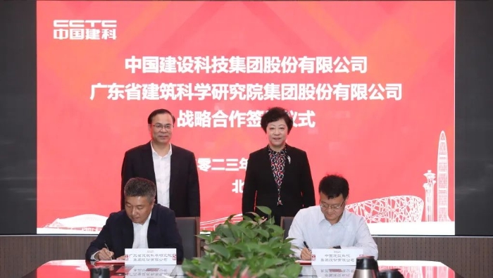 10月9日,中国建设科技集团股份有限公司(简称中国建科)与广东省建筑科学研究院集团股份有限公司(简称广东建科院)在京签署战略合作协议。中国建科党委副书记、总裁孙英与广东建科院党委书记、董事长陈少祥围绕绿色低碳发展进行座谈交流。